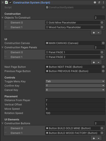 -Press Y to confirm building placement/ X to cancel it(you can change keyboard buttons for those in inspector aswell)